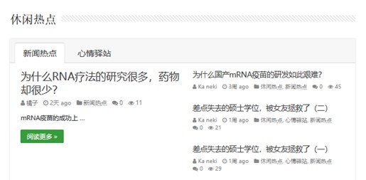 休闲热点板块不仅包含热点评析还有科研趣闻故事、手记等,帮助科研者了解热点,增添科研乐趣: