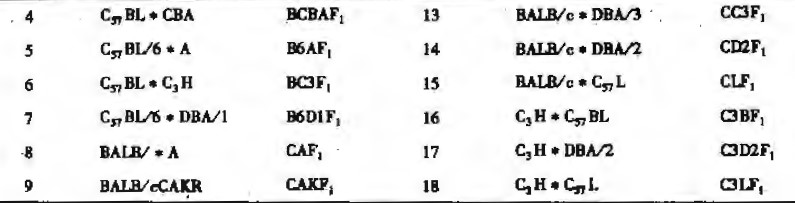 两个不同的近交系之间杂交所产生的第一代动物称系统杂交动物或F1动物。而两个以上的品系之间的杂交称三元杂交、四元杂交后生的后代统称为杂交群动物。而我们所说的系统杂交动物是指上述的F1代动物,如AKR 和DBA/2 小鼠交配后的第一代动物为AKD2F1 ,在这里, AKR 和DBA/2 称为亲本品系,其中一个为夫系,另一个为母系。它们的后代的基因型和表现型一致,是医学研究所使用的相同基因型的一种。严格地讲,杂交F1代动物不是一个品系或一个品种,因为它不具有育种功能,不能自群繁殖成与杂交F1代相同基因型的动物。