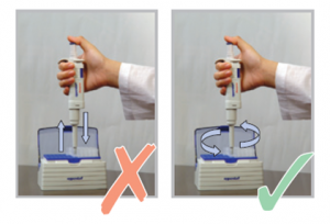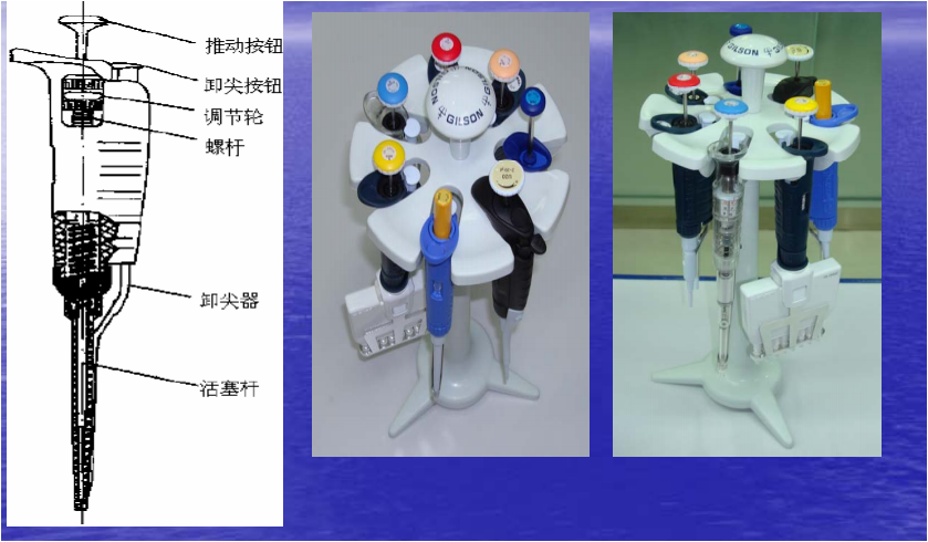 2. 当移液枪枪头里有液体时切勿将移液器水平或倒置放置,以防液体流入移液枪腐蚀移液枪。 应将移液器挂在移液器架上。