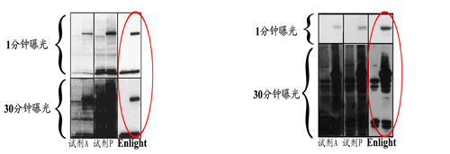 对一些实验来说,如果实验结果本应是多条带,只是一些带由于蛋白量多较强,短时曝光即可检测,而另一些带由于蛋白量相对较少,需要长时间曝光才可检测,这时候主要的影响因素就是发光试剂,因为如果加大抗体的量,普通的发光试剂背景也会相应加大,影响较弱条带的检测,如果减少抗体的量,普通的发光试剂较弱条带不易检测,长时间曝光同样隐藏在背景之中。这时如果不知道还有较弱条带的存在,实验的结论实际上被发光试剂影响了。如果有能长时间曝光而低背景的发光试剂,那么得到的结果就会非常可靠。