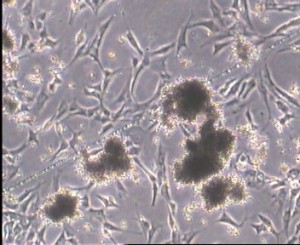 9) 加入10ml培养液,加入2ml双抗,放置培养箱培养,5小时之后,倒掉培养基,加入PBS洗瓶两次,然后加入胰酶消化,吹打后置于离心机800-1000r/min离心,然后洗一次。置于新的培养瓶里培养,培养体系加入2ml双抗。
