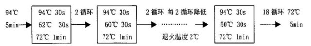 由于目标是在较早的循环中避免低Tm值配对,在TD—PCR中最好应用热启动技术。设计时,退火温度的范围应跨越15℃左右,从高于估计Tm值至少几度到低于它10℃